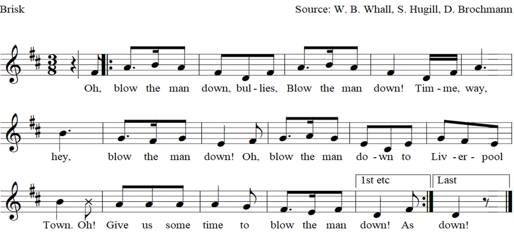 Oh, blow the man down, bullies, blow the man down,
