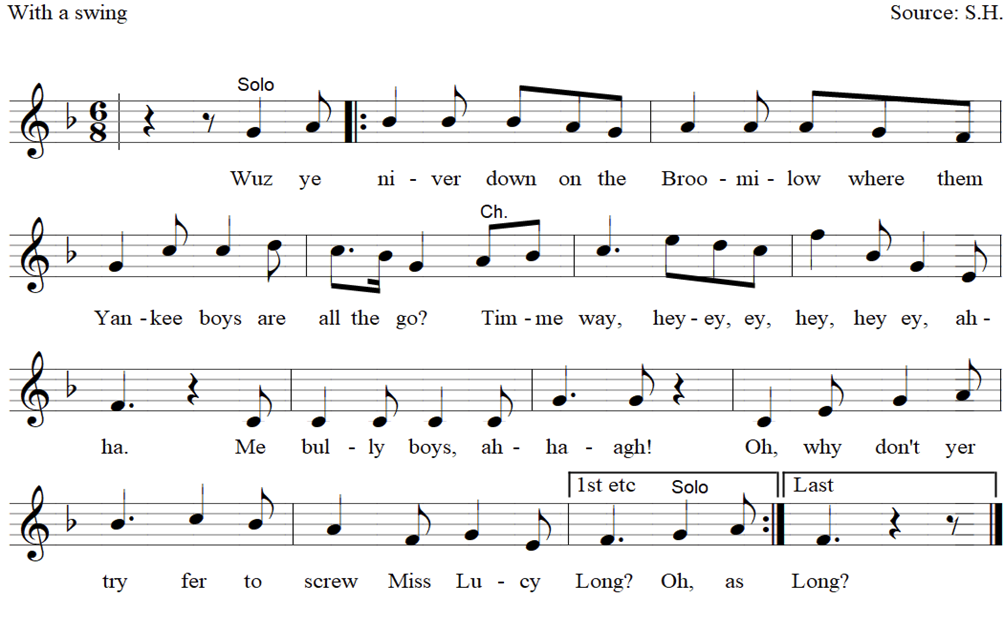 Oh, why don’t yer try fer to woo Miss Lucy Long?
